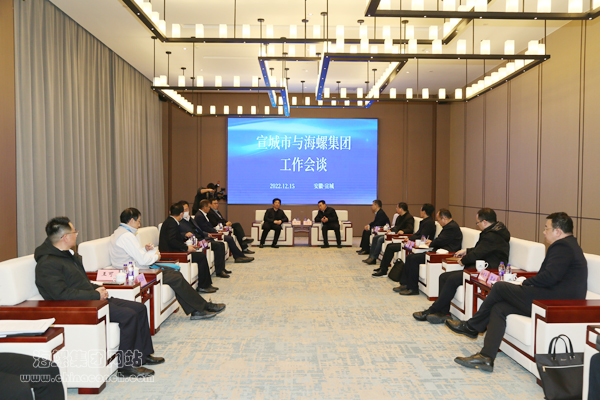 儀式結(jié)束后,楊軍一行與宣城市委、市政府領(lǐng)導(dǎo)進(jìn)行了工作會談。雙方表示,宣城是海螺集團(tuán)的發(fā)祥地,宣城市與海螺集團(tuán)淵源深厚,雙方轉(zhuǎn)型發(fā)展方向一致,近年來在各領(lǐng)域合作日益緊密。雙方要加強(qiáng)對接、細(xì)化舉措、強(qiáng)化保障,為海螺建筑光伏項目建設(shè)運(yùn)營創(chuàng)造良好環(huán)境。同時,要持續(xù)深化地企合作,積極響應(yīng)國家碳達(dá)峰、碳中和號召,搶抓綠色低碳發(fā)展機(jī)遇,聚力節(jié)能降碳和產(chǎn)業(yè)轉(zhuǎn)型升級,加強(qiáng)新能源、新材料上下游產(chǎn)業(yè)鏈的深層次、全方位合作,攜手推進(jìn)更高質(zhì)量發(fā)展,實現(xiàn)互利共贏,為安徽經(jīng)濟(jì)社會發(fā)展貢獻(xiàn)更大力量。