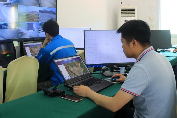 “根據(jù)當天生產(chǎn)計劃,導入配礦計劃,尋跡編碼、路線、挖機、卸料口等配置信息的檢查是第一步,在得到無人駕駛安全員的安全回復后,才能下發(fā)點火指令?!焙2┲悄芸萍脊緦嵻嚋y試工程師李林說,他正在對無人礦車進行發(fā)車前的詳細安全檢查。