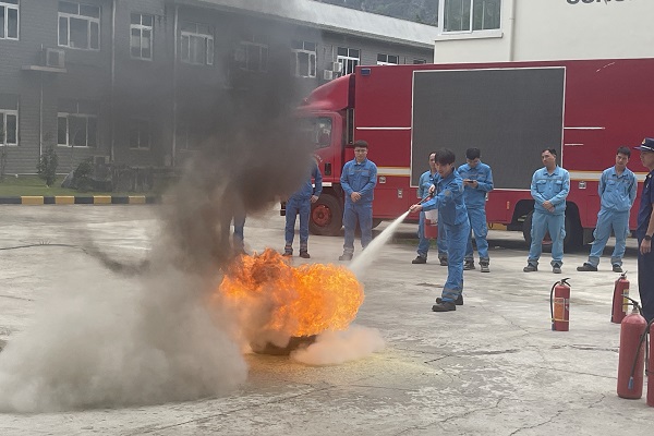 “發(fā)現(xiàn)明火時,要保持冷靜、切勿慌張,及時撥打119火警電話報警并對現(xiàn)場進行斷電,隨后拿到滅火器首先要將其上下顛倒搖晃使干粉松動,然后拔掉鉛封、拉出保險銷,站在上風口距著火源2-5米位置對準火焰根部噴射……”在凌云通鴻公司,百色市凌云縣消防大隊應(yīng)邀到公司開展消防安全知識培訓及實操演練。