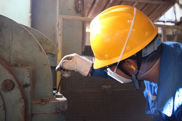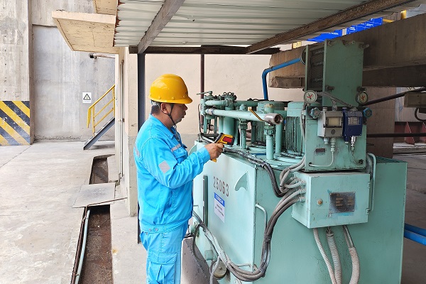 蕪湖海螺1號窯1218皮帶減速機前,巡檢工章利正在對減速機油位進行檢查,他說:“巡檢是直接接觸設(shè)備的工作,要確保安全穩(wěn)定,不能出一絲紕漏。”(龍新陽/攝)