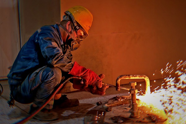 窯檢修現(xiàn)場,機械維修工張紅勝全神貫注地操作著氣割槍,即便得心應手,他也始終保持謹慎與專注。(王凱/攝)