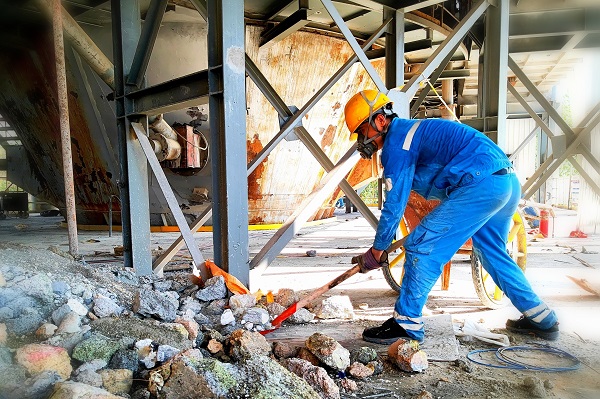 8月2日,達州海螺窯檢修步入尾聲,巡檢工馮圣超正在對檢修過程更換的澆注料等進行清理。(段益平/攝)