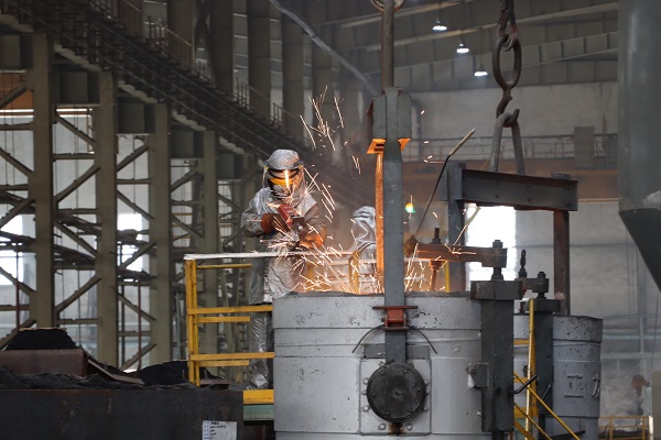 8月17日清晨,海川裝備公司180輥壓機軸承座澆注生產(chǎn)作業(yè)正在緊張有序地進行中,為了保證這個重達近10噸的“大家伙”最終的澆注質(zhì)量,鑄造分廠澆注工程國強正在和工友們進行著最后的測溫工作,厚重的鋁箔防火隔熱服內(nèi),汗水順著皮膚不斷滑落,而他們依舊全神貫注,他說:“鋼包測溫是澆注工序的最后一項重要工作,必須保證每個動作規(guī)范到位,心靜自然涼,專注在手上,也就感覺不到熱了?!保▍雾嵶?攝)