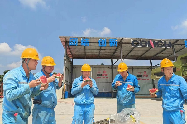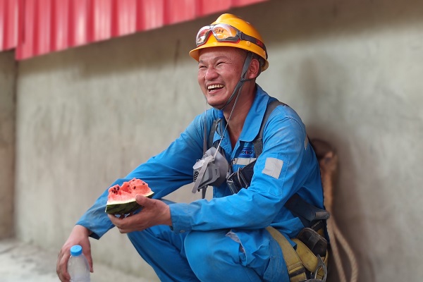 搶進度、穩(wěn)運行、抓生產(chǎn),這群可愛可敬的身影穿梭于生產(chǎn)一線,陽光照耀下,他們面龐上的汗水愈發(fā)顯得晶瑩。一心抓安全生產(chǎn)的他們,也同樣需要得到保護,從西瓜、冰鎮(zhèn)綠豆湯、酸梅湯,到仁丹、十滴水,鏡頭下,接過防暑降溫品的他們,露出了質(zhì)樸真誠的笑容,這就是夏日里海螺水泥一線員工群像。