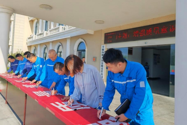 “一筆一劃簽下的不僅是自己的姓名,還有對質(zhì)量的承諾?!眻D為梁平海螺、全椒海螺、海川裝備廣大員工在“質(zhì)量月”橫幅上簽名,發(fā)出“人人關(guān)心質(zhì)量、人人重視質(zhì)量、人人追求質(zhì)量”的倡議。