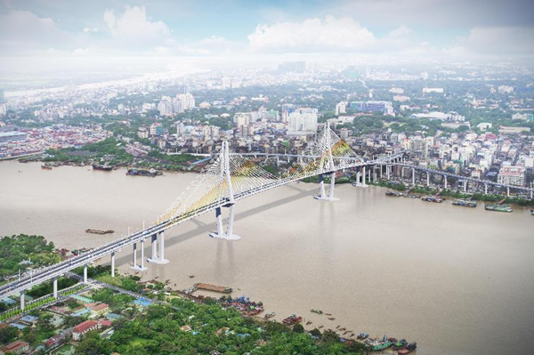 仰光,緬甸的舊都和國內(nèi)最大城市,勃固河與仰光河穿城而過,其中寬闊的仰光河把城區(qū)和達拉鎮(zhèn)一分為二,兩岸人民隔河相望,來往主要依靠輪渡船或小舢板,擁有一座連通兩岸的橋始終縈繞在當?shù)孛癖姷男念^。2019年,使用海螺水泥的達拉大橋項目動工,建成后將極大改善兩岸交通狀況,提高當?shù)鼐用裆钏?,并有望在達拉鎮(zhèn)一側(cè)形成新的經(jīng)濟發(fā)展新區(qū),促進仰光乃至緬甸全國的經(jīng)濟發(fā)展。