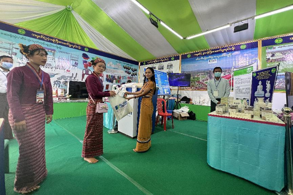 2023年2月10日,第76屆緬甸聯(lián)邦節(jié)展會在仰光人民公園舉辦,一位參加展會的小姑娘正熱情洋溢地向同行人員推薦海螺水泥品牌