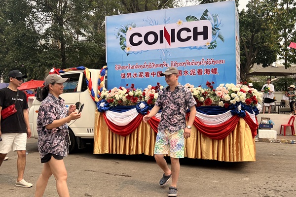 4月14日下午,節(jié)日當(dāng)天,瑯勃拉邦一下就熱鬧了起來,拜佛、浴佛、潑水、栓線、布施、堆沙、放生、游行等各類活動(dòng)輪番上演,人們的歡呼聲、掌聲和潑水聲交織在一起,仿佛整個(gè)瑯勃拉邦城都要被人們辭舊迎新的歡樂氣氛所淹沒。裝扮著海螺CONCH Logo和佛歷2566年祝福的花車領(lǐng)頭,60名身穿海螺文化衫的巡游隊(duì)伍慢行著經(jīng)過瑯勃拉邦著名的法國街,街邊圍觀的人群熙熙攘攘?!翱烨疲鞘俏覀冎袊髽I(yè)的隊(duì)伍!”一名中國游客手指海螺水泥游行方隊(duì)激動(dòng)地說,“我知道你們海螺水泥,在這里能夠看見中國自己的企業(yè),感覺很親切,也很自豪?!?/span>