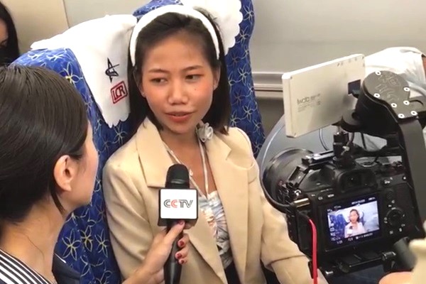 烏灑尼乘坐動(dòng)車時(shí)接受中央電視臺(tái)的采訪