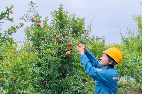 “看!那棵石榴樹是我種的!現(xiàn)在已經(jīng)長這么高了!”2023年9月,在安徽長豐海螺,石榴園里一片歡聲笑語,員工們紛紛提著果籃,開心地采摘著殷紅的石榴。四年前,長豐海螺遷至吳山鎮(zhèn)后,在這里種下了20多棵石榴樹,如今,一棵棵幼苗已經(jīng)成熟長大、開花結(jié)果。除了石榴樹,長豐海螺的梨樹、桃樹、枇杷,也在員工們的精心打理下,長勢喜人,每到豐收時節(jié),廠區(qū)里就會點(diǎn)綴上不同于春日百花開的別樣色彩。