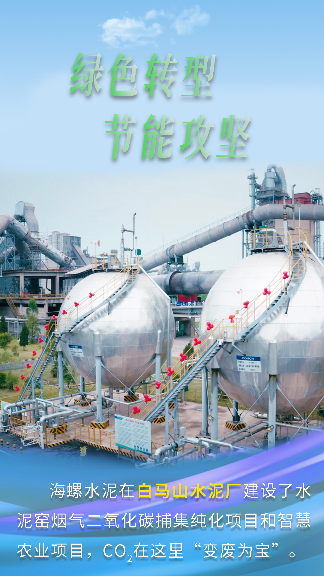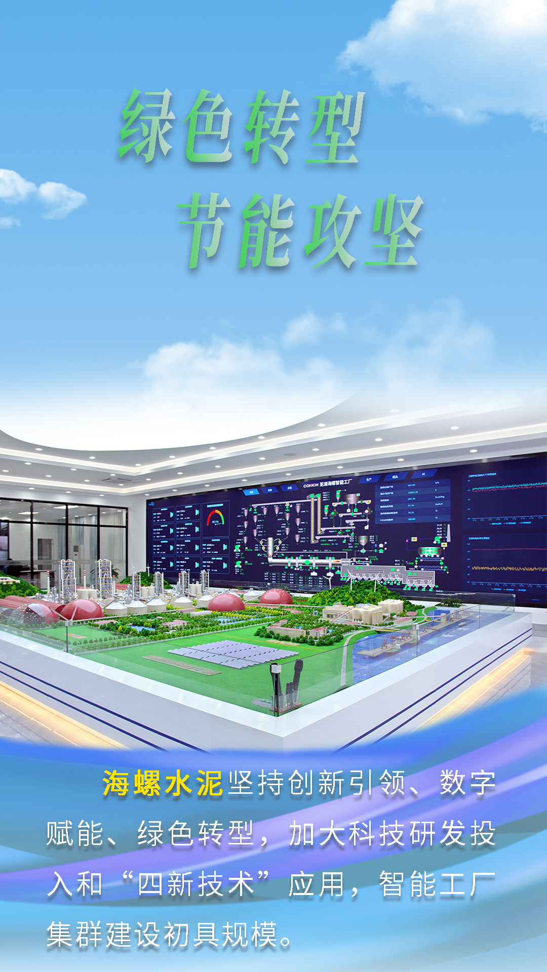 今天跟隨海報畫面鏡頭,一起來了解海螺水泥“綠色轉型,節(jié)能攻堅”的故事。