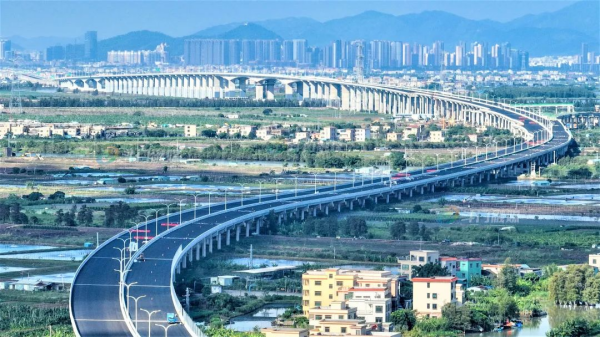 黃茅??绾Mǖ?/span>作為港珠澳大橋的西延,起于珠海市平沙鎮(zhèn),終于江門(mén)市斗山鎮(zhèn),全長(zhǎng)約31公里,采用雙向6車(chē)道高速公路標(biāo)準(zhǔn),跨海段長(zhǎng)度約14公里,全線設(shè)置高欄港大橋、黃茅海大橋2座主橋以及隧道2座、互通4座、服務(wù)區(qū)1處。黃茅??绾Mǖ赖耐ㄜ?chē),使得粵港澳大灣區(qū)“1小時(shí)生活圈”正逐步從發(fā)展愿景成為生活現(xiàn)實(shí)。
