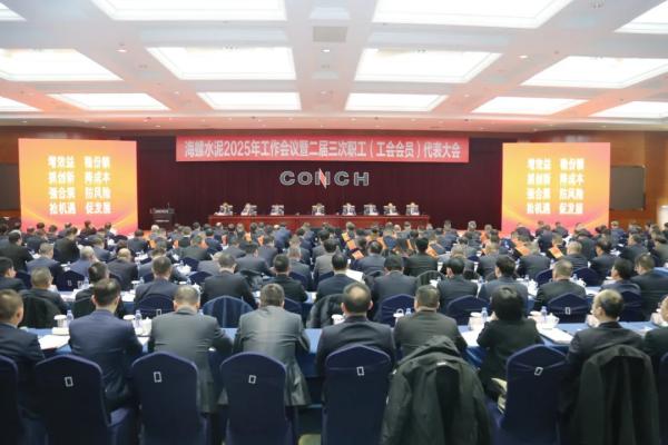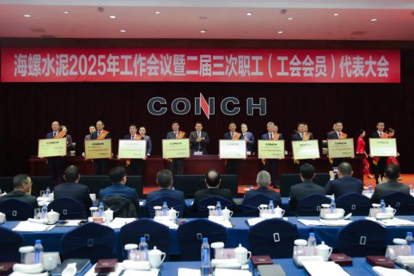 1月16日下午—1月17日上午,海螺水泥在總部大廈三樓海螺廳召開了2025年工作會議暨二屆三次職工(工會會員)代表大會??偨Y(jié)2024年工作,部署2025年經(jīng)營目標(biāo)任務(wù)。公司班子、各區(qū)域、子公司主要負(fù)責(zé)人、海螺環(huán)保班子成員、各部室負(fù)責(zé)人以及職工代表共300余人在蕪湖主會場參加了會議,各子公司其他班子成員及二級部門主要負(fù)責(zé)人以視頻連線方式參加了會議。會議分別由公司黨委副書記、工會主席劉田田和公司副總經(jīng)理吳鐵軍主持。