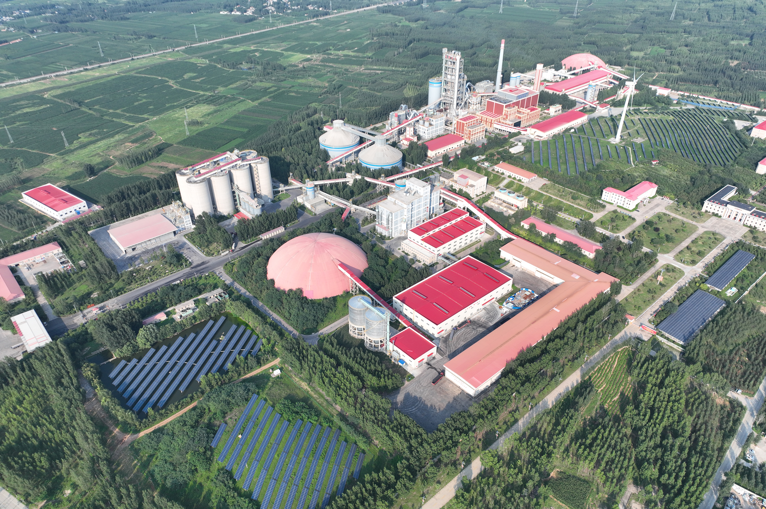 公司致力于打造節(jié)能減排、清潔生產(chǎn)典范,熟料線配套建設(shè)2套帶輥壓機(jī)水泥粉磨系統(tǒng),先后建成1.5MW風(fēng)力發(fā)電、9MW垃圾發(fā)電和兩期共計(jì)11.48MW光伏發(fā)電系統(tǒng),10萬噸水泥窯協(xié)同處理固危廢系統(tǒng)以及9MW生物質(zhì)氣化補(bǔ)充熱能發(fā)電項(xiàng)目,園區(qū)內(nèi)五種形式的綠色能源發(fā)電項(xiàng)目,裝機(jī)容量39.98MW,年發(fā)電量可達(dá)2.075億度、并網(wǎng)電量1.85億度,節(jié)約標(biāo)煤5.5萬噸,減排二氧化碳18萬噸。