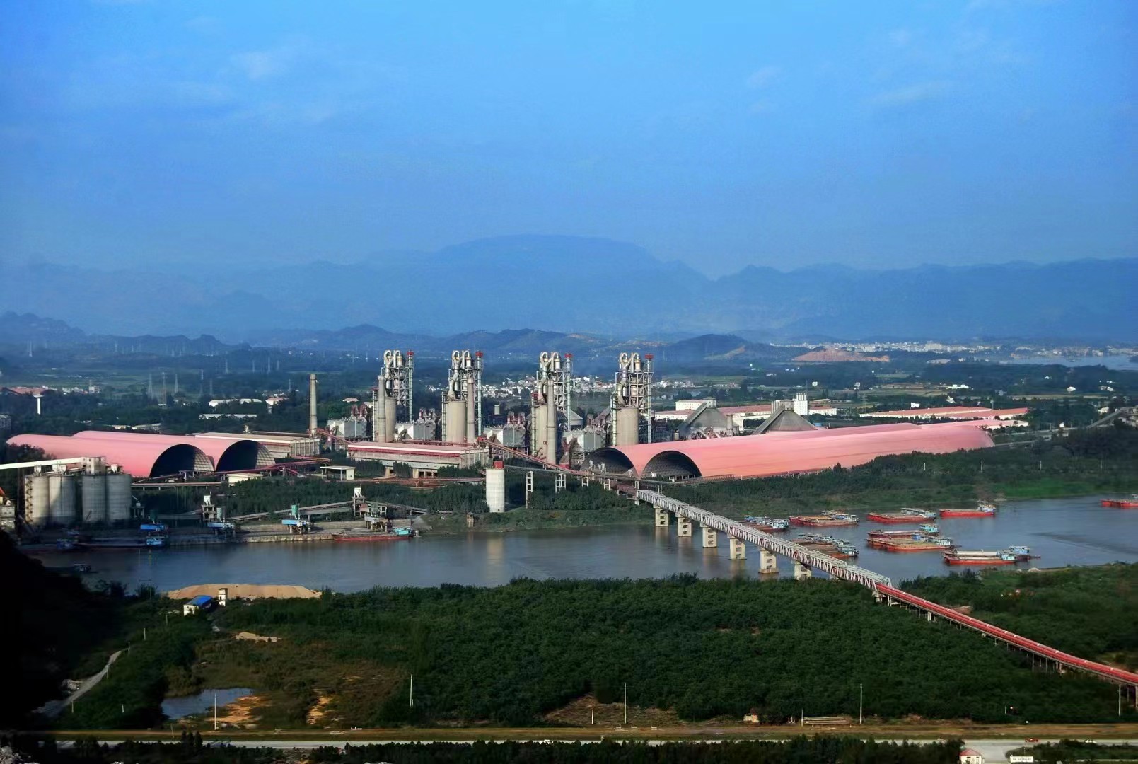 公司現(xiàn)有兩條日產(chǎn)4500噸、兩條日產(chǎn)5000噸熟料生產(chǎn)線,1臺(tái)Φ4.2x14.5m水泥粉磨,5臺(tái)Φ4.2x14.5m帶輥壓機(jī)水泥粉磨,配套6*1000噸級(jí)散貨泊位。4條熟料生產(chǎn)線項(xiàng)目于2005年3月19日全面開(kāi)工建設(shè),2006年4月20日全部建成投產(chǎn)。其中第1條生產(chǎn)線建設(shè)工期僅九個(gè)多月,實(shí)現(xiàn)了當(dāng)年圖紙?jiān)O(shè)計(jì)、當(dāng)年設(shè)備訂貨、當(dāng)年點(diǎn)火投料的建設(shè)目標(biāo),刷新了當(dāng)時(shí)水泥行業(yè)5000t/d熟料生產(chǎn)線建設(shè)的記錄。同期建設(shè)的6套水泥粉磨系統(tǒng)分別于2006年6月25日、8月17日、8月30日、9月12日、9月25日、9月30日建成投產(chǎn),5臺(tái)輥壓機(jī)技改項(xiàng)目分別于2016年1月、4月、2017年2月、3月和2021年6月全部投入運(yùn)行,改善了水泥磨運(yùn)行指標(biāo)及緩解了品種的壓力。