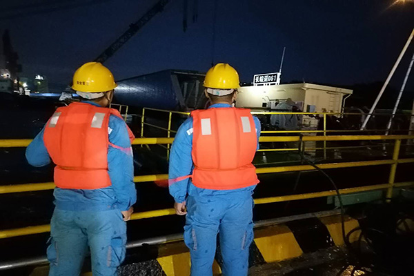 礦山開采環(huán)境特殊,水泥分廠臨近長江,公司根據(jù)實(shí)際,及時(shí)開展礦山邊坡地質(zhì)災(zāi)害監(jiān)測預(yù)警預(yù)報(bào)工作,重點(diǎn)加大對泥石流、山體滑坡等災(zāi)害的預(yù)判和巡察,嚴(yán)防坍塌、山體滑坡事故的發(fā)生,及時(shí)調(diào)度大型設(shè)備疏通低洼區(qū)域排水。同時(shí),公司組織骨干力量密切跟蹤監(jiān)視碼頭區(qū)域防汛警戒線、汛期岸線巡查,每隔兩個(gè)小時(shí)測量一次水位,分廠負(fù)責(zé)人連夜帶隊(duì),對碼頭大型設(shè)備防風(fēng)、躉船固定、江堤及地坑低洼處情況進(jìn)行檢查,再三檢查確認(rèn)躉船錨鏈調(diào)整松緊情況,確保重點(diǎn)區(qū)域防汛措施精準(zhǔn)到位。