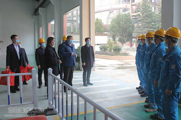 2月10日,高登榜一行深入蕪湖海螺制造一分廠電儀工段、中控室、職工宿舍和員工食堂,詳細了解公司節(jié)日期間安全生產(chǎn)及后勤保障情況,看望慰問在崗干部員工和就地過年的青年員工。
