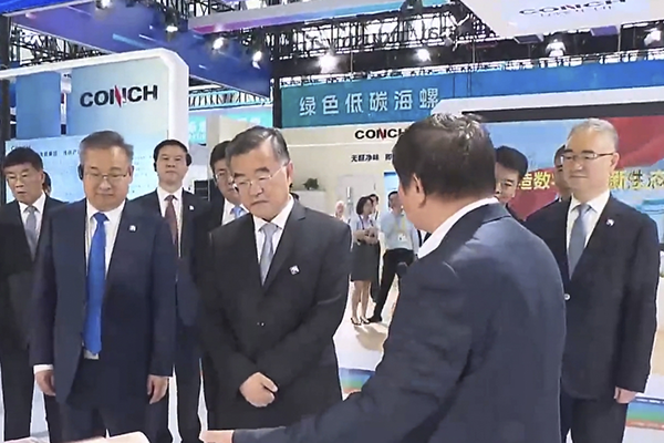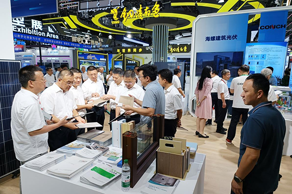 開幕式后,全國人大常委會副委員長張慶偉、省委書記梁言順、省長王清憲一行巡館,查看了海螺集團展館和海螺建筑光伏大道,聽取了海螺加快產業(yè)轉型升級,推動企業(yè)高質量發(fā)展的情況介紹。