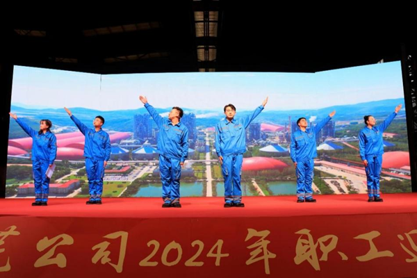 白馬山水泥廠合唱伴舞《吹響海螺號,踔厲奮發(fā)永向前》,將全場氛圍推向高潮。