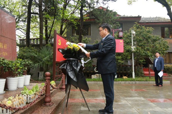 隨后,公司黨委向王稼祥銅像敬獻花籃,黨委書記、總經理李群峰緩步上前,仔細整理緞帶,緞帶上書寫的“王稼祥同志永垂不朽”格外醒目,秀麗淡雅的菊花寄托著對革命英雄的無盡思念和崇高敬意。
