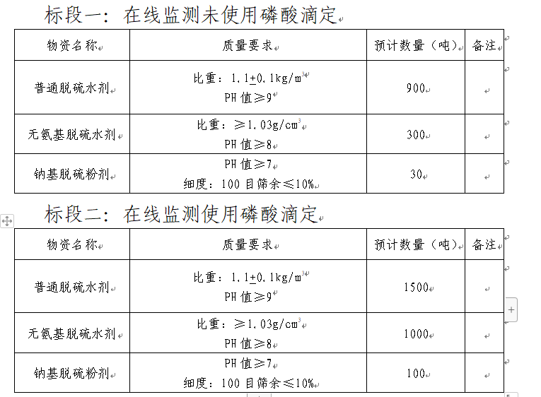 3.質(zhì)量指標:滿足國家化工合格品相關(guān)質(zhì)量控制標準,產(chǎn)品對設(shè)備無腐蝕,對熟料質(zhì)量和正常生產(chǎn)無影響。同時預計招標人將在2024年2月份開始使用在線監(jiān)測磷酸滴定法,要求中標單位提前做好相關(guān)準備,屆時收到招標人正式通知后馬上啟動。