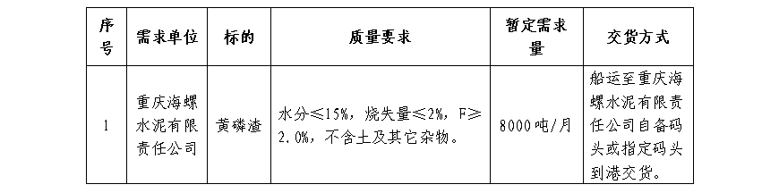 重慶海螺黃磷渣采購招標(biāo)公示