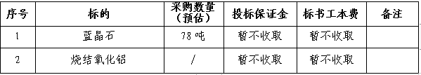 2、燒結(jié)氧化鋁因采購量不確定,本次招標(biāo)僅作為本公司采購備用原材料??紤]上述原材料存在無執(zhí)行情況,投標(biāo)保證金、標(biāo)書工本費和合同履約保證金暫不收取。