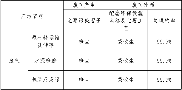 黃山海螺水泥有限責任公司具體廢氣產(chǎn)生及處置、排放情況如表3所示。