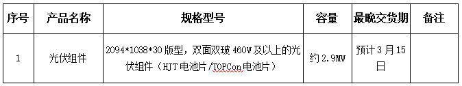 根據(jù)生產(chǎn)經(jīng)營需要,宣城海螺建筑光伏科技有限公司擬對2024年度光伏組件采購進行公開招標,為進一步體現(xiàn)“公開、公平、公正”的原則,現(xiàn)發(fā)布公開招標信息,歡迎有能力的單位報名參加此次招標活動,現(xiàn)將有關(guān)事項公示如下: