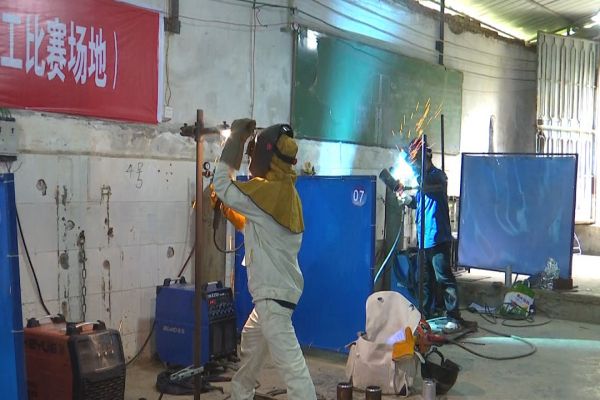比賽現(xiàn)場,公司代表電工參賽選手王智林、黃甫浪同志認(rèn)真觀察復(fù)雜的線路板和元器件,充分運用自己的專業(yè)知識仔細(xì)排查故障。鉗工參賽選手馬磊同志利用手中的工具在工作臺和鉗臺上劃線、鋸割、打磨、找平、拋光,鋸割聲、銼刀聲、敲打聲此起彼伏?!昂笇ⅰ眰儎t一手拿防護面罩,一手持電焊槍作業(yè),現(xiàn)場焊花飛舞,弧光四溢。大家都紛紛拿出看家本領(lǐng),大展身手、各顯神通,通過競賽切磋技藝、交流技術(shù)、提升技能。
