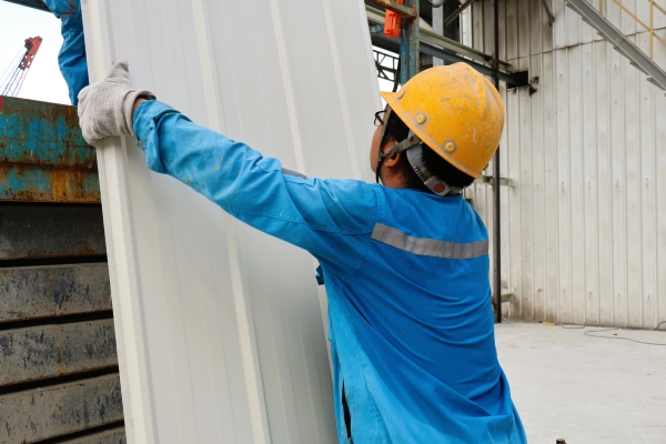 幾名維修工師傅正搶抓工期搭建防雨棚,為公司即將實施的碼垛裝船、托盤裝車“一機兩用”技改做足準(zhǔn)備。