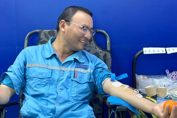 參與本次獻血有的是多次獻血的“老將”,有的是第一次獻血的“新手”。廣英公司碼頭工段司磅員成家興是在場年紀最大的志愿者,當?shù)弥窘M織獻血時,沒有獻血經(jīng)驗的他第一時間報了名,“我是第一次參加獻血,很激動也很榮幸,想到我的血液能夠幫助到他人,就覺得很有意義。”礦山分廠廠長助理瞿不理多次參加無償獻血活動,這次他又積極報名,奉獻大愛,獻血400毫升,“在周圍朋友同事的感染下,我嘗試了無償獻血,雖然中途有過中斷,但我很慶幸沒有放棄,之后我也會繼續(xù)堅持下去”。