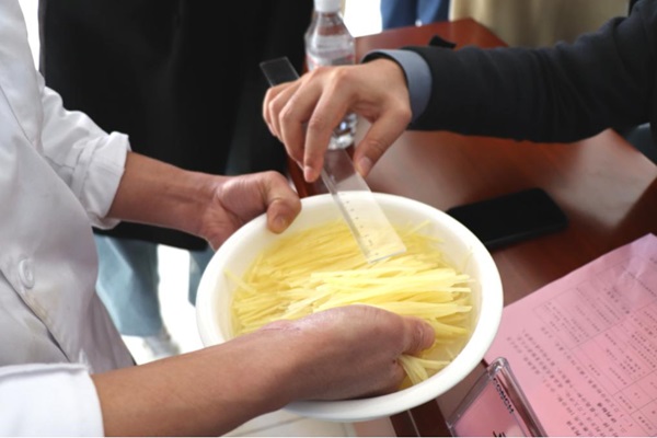 大賽初始,刀工競技率先驚艷全場。參賽者們各顯神通,一把把菜刀在他們手中仿若靈動(dòng)的畫筆,食材則幻化為精美畫布。只見廚師們手法嫻熟、運(yùn)刀似疾風(fēng)閃電,將土豆穩(wěn)穩(wěn)置于案板之上,鋒利的刀刃輕觸土豆,隨后便開始了令人驚嘆的切絲表演。那切出的土豆絲細(xì)如發(fā)絲,且經(jīng)測量,根根粗細(xì)均勻,毫厘之差盡顯超凡控制力與精湛技藝?!巴?,此技堪稱一絕,這也太厲害了!”現(xiàn)場觀眾紛紛為廚師們的高超刀工所折服,驚嘆之聲此起彼伏,仿佛在觀賞一場精彩絕倫的指尖藝術(shù)表演。