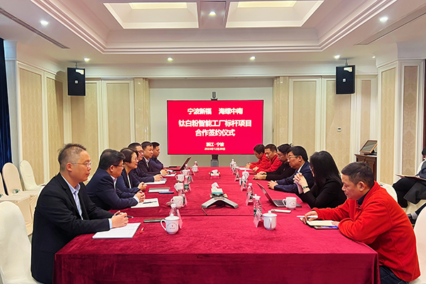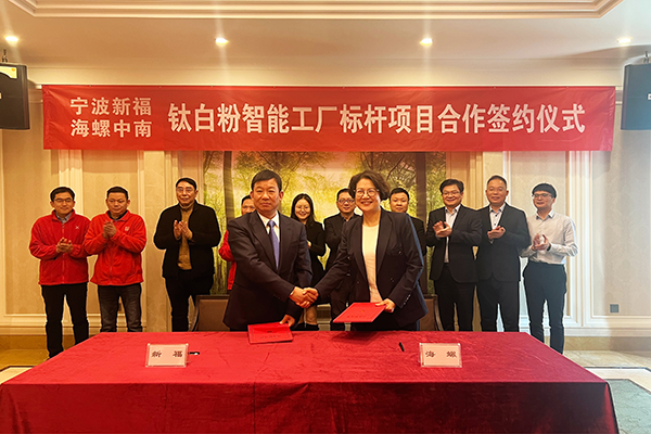 2024年12月20日上午,海螺中南在寧波新福鈦白粉公司辦公樓與該公司簽署了“寧波新福鈦白粉智能工廠標(biāo)桿項目”合作協(xié)議。寧波新福鈦白粉公司董事長陸祥芳一行人,安徽海螺水泥股份有限公司總經(jīng)理助理許越、浙江區(qū)域總裁陶勇、寧波海螺總經(jīng)理范毓祥、海螺中南執(zhí)行總經(jīng)理梁施華、總經(jīng)理助理王炎飛及雙方公司相關(guān)人員共同出席了簽約儀式。