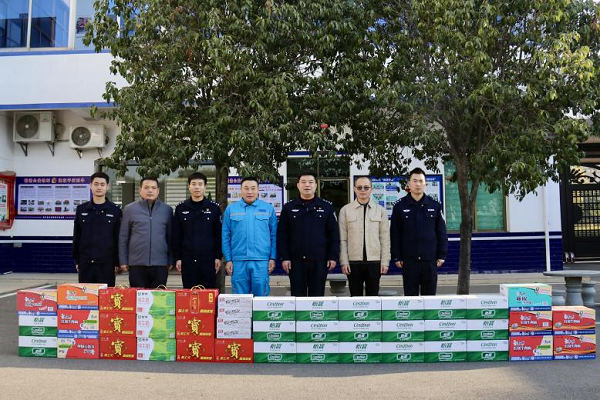 正值慶?!?.10”中國人民警察節(jié)5周年,為進一步密切警企關(guān)系,發(fā)揚海螺擁警擁政優(yōu)良傳統(tǒng),2024年1月10日,公司工會副主席王瑞智、總經(jīng)理助理郭鵬飛帶領(lǐng)公司慰問小組,先后前往信豐縣西牛鎮(zhèn)派出所、縣交警大隊開展了節(jié)日慰問,為他們送去方便面、牛奶、礦泉水等物資,向守護一方平安的人民警察致以崇高敬意與誠摯謝意。