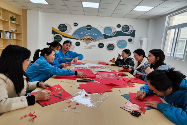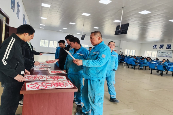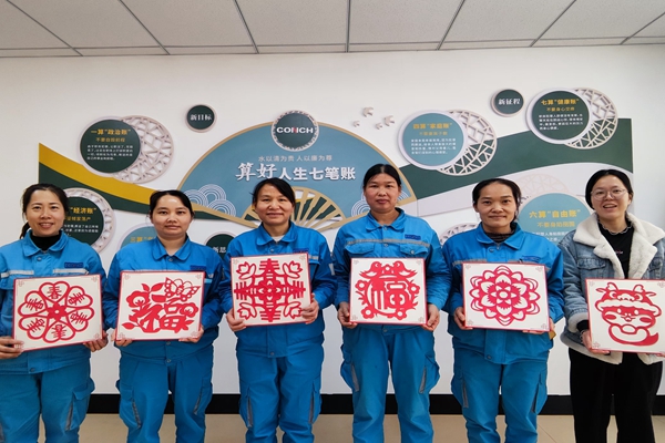 “想不到今年還能領(lǐng)到手工剪裁的窗花,我只有在小時(shí)候外婆給我剪過(guò),讓我想起小時(shí)候的春節(jié),真是越來(lái)越有年味兒了!”一位生產(chǎn)崗位的員工一邊挑選著窗花一邊說(shuō)道。