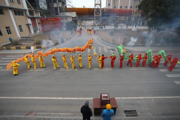 13時18分,龍獅隊回到寧國水泥廠,從海螺山下的礦山、從日產(chǎn)5000噸生產(chǎn)線,舞到海螺“母親窯”、舞到了人才培養(yǎng)基地寧國培訓(xùn)中心……所到之處,廣大員工精神振奮,滿懷一份感恩之情,表示要進一步凝心聚力、開拓進取,把干勁和熱情發(fā)揮到各項工作中去,搶抓機遇共謀寧國工廠新發(fā)展。表演過程中,干部員工積極參與到舞龍舞獅活動的表演中,共同歡度元宵佳節(jié)。期間,龍獅隊一行還前往在寧企業(yè)海螺環(huán)保和海創(chuàng)綠能進行慰問表演,給廣大員工送去節(jié)日的祝福。