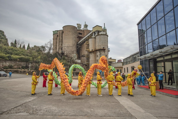 上午8時28分,龍獅隊抵達宣城海螺公司。他們從礦山分廠到兩條日產(chǎn)5000噸生產(chǎn)線,從中控樓到發(fā)運廣場、辦公樓……一路龍獅歡躍,與那里的海螺員工共舞同樂。