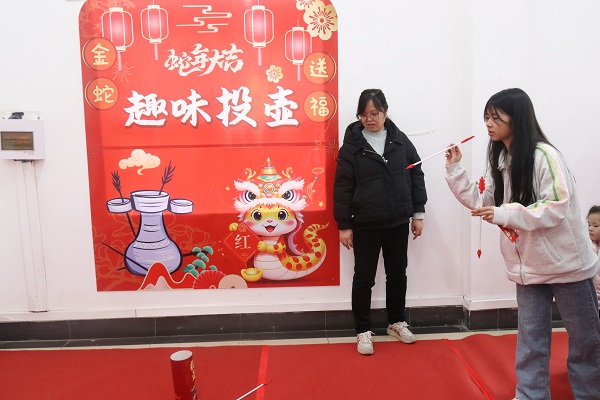 “趣味投壺”攤位同樣吸引眼球,大家手持飛箭,瞄準(zhǔn)目標(biāo),紛紛嘗試將飛箭投入壺中,仿佛穿越回古代游園盛會(huì)。投壺過(guò)程中,有的參與者憑借精準(zhǔn)的投擲技巧,輕松地將飛箭投入壺中,兌換到了獎(jiǎng)?wù)?;而有的則在一次次嘗試中不斷調(diào)整姿勢(shì)和力度,享受著投壺帶來(lái)的樂(lè)趣。現(xiàn)場(chǎng)氣氛緊張而熱烈,歡聲笑語(yǔ)不斷。