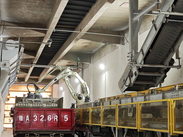 贛江海螺的綠色蝶變,離不開科技的強(qiáng)力支撐。生產(chǎn)車間,智能化、自動(dòng)化設(shè)備隨處可見。智能照明系統(tǒng)根據(jù)光線自動(dòng)調(diào)節(jié)亮度,節(jié)約用電;節(jié)能型風(fēng)機(jī)、水泵等設(shè)備高效運(yùn)轉(zhuǎn),降低能耗;先進(jìn)的DCS控制系統(tǒng)實(shí)時(shí)在線監(jiān)控,確保生產(chǎn)高效、穩(wěn)定運(yùn)行……“2024年,公司對(duì)袋裝裝車道實(shí)施智能化改造,安裝袋裝機(jī)器人自動(dòng)裝車系統(tǒng),實(shí)現(xiàn)自動(dòng)包裝、機(jī)器人裝車、無(wú)人過磅,在降低員工勞動(dòng)強(qiáng)度的同時(shí),極大提升了裝卸效率,并進(jìn)一步降低了揚(yáng)塵?!碑?dāng)問及公司智能化建設(shè)成效時(shí),包裝工段吳高松舉例說。