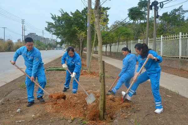 3月11日上午,北流海螺與北流市民安鎮(zhèn)黨委、政府、北流市交通運輸局、兩灣北流產(chǎn)業(yè)園管委等部門在公司外X203縣道聯(lián)合開展了一場主題為“政企聯(lián)合,植樹造林,共造藍天綠水青山”的公益植樹活動。
