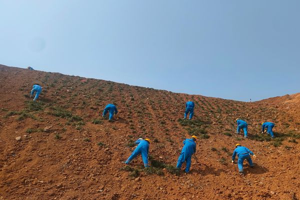 礦山種樹(shù)光有熱情還不夠,還要講究科學(xué)的種植方式。沒(méi)有植樹(shù)技術(shù)員怎么辦?不要緊!礦山穿爆班在工作中常常與巖石、土壤打交道,閑暇之時(shí)又經(jīng)常開(kāi)展復(fù)綠工作,早已是礦山苗木種植的“專家”。他們細(xì)心指導(dǎo)大家“樹(shù)坑還要多挖一寸深”“這個(gè)坑不夠?qū)挘偻邳c(diǎn)”“填土不要壓太實(shí)了,既要保持樹(shù)苗穩(wěn)固,又要保障透氣性......”,大家認(rèn)真聽(tīng)著植樹(shù)技巧,分工合作,有條不紊,干勁十足。不一會(huì)兒,一棵又一棵樹(shù)苗開(kāi)始挺立起來(lái)。