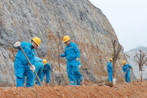 隆安海螺不僅重視廠區(qū)的綠化建設(shè),對(duì)礦山的綠色生態(tài)建設(shè)更為關(guān)注,在做好公司窯用石灰石以及骨料開(kāi)采的同時(shí),隆安海螺堅(jiān)持不懈開(kāi)展礦山生態(tài)修復(fù)治理工作。3月12日,大家伙紛紛擼起袖子,拿起植樹(shù)工具,投身礦山復(fù)綠行動(dòng)中,比試誰(shuí)種的苗木又多又好!