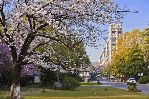 三月的皖南,春風(fēng)拂過青巒疊嶂,在“中國水泥工業(yè)搖籃”寧國水泥廠區(qū)內(nèi)外,幾十棵櫻花樹、海棠花競相綻放。粉白相間的花枝纏繞著冷卻塔與母親窯,紫紅色的紫荊花沿著海螺湖畔蜿蜒生長,這座擁有四十多年歷史的老牌水泥企業(yè),正以一場跨越時空的春日對話,演繹著現(xiàn)代工業(yè)文明與生態(tài)文明交融共生的動人篇章。