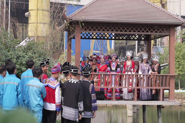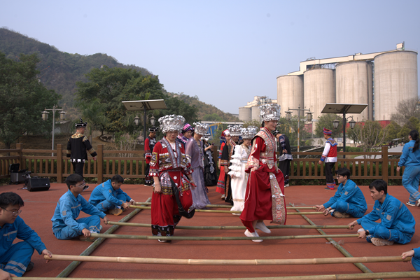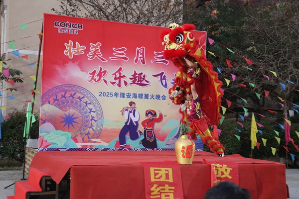 在廣西三月三這一天,人們會(huì)進(jìn)行舞龍舞獅表演來(lái)慶祝節(jié)日,通過(guò)舞龍舞獅表演來(lái)展示人們對(duì)美好生活的追求和對(duì)傳統(tǒng)文化的傳承。“壯美三月三、歡樂(lè)趣飛揚(yáng)”主題文藝匯演在舞獅、醉獅的熱鬧鼓聲中拉開了帷幕。《山歌好比春江水》《什么水面打筋斗》《唄噥情深》一首首悅耳的歌曲縈繞在海螺水泥廠區(qū)上空。“嘿,咱們水泥質(zhì)量棒咧,嘿撩撩螺,高樓大廈它來(lái)扛咧,嘿撩撩螺,精心配比細(xì)研磨咧,品質(zhì)一流響當(dāng)當(dāng)咧,嘿撩撩螺。”員工們將水泥生產(chǎn)流程、企業(yè)文化融入山歌,用悠揚(yáng)的旋律抒發(fā)對(duì)工作的熱愛。