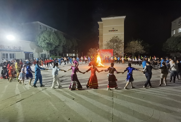 文藝匯演接近尾聲,熊熊燃燒的篝火也散發(fā)著熱烈而溫暖的光芒。參加活動(dòng)的職工紛紛圍著篝火豪放的跳動(dòng)起來(lái),現(xiàn)場(chǎng)歡快的旋律與大家熱情的舞步交織,盡情釋放著內(nèi)心的喜悅和激情。音樂(lè)與歡笑融為一體,呈現(xiàn)了民族團(tuán)結(jié)和諧的盛況。