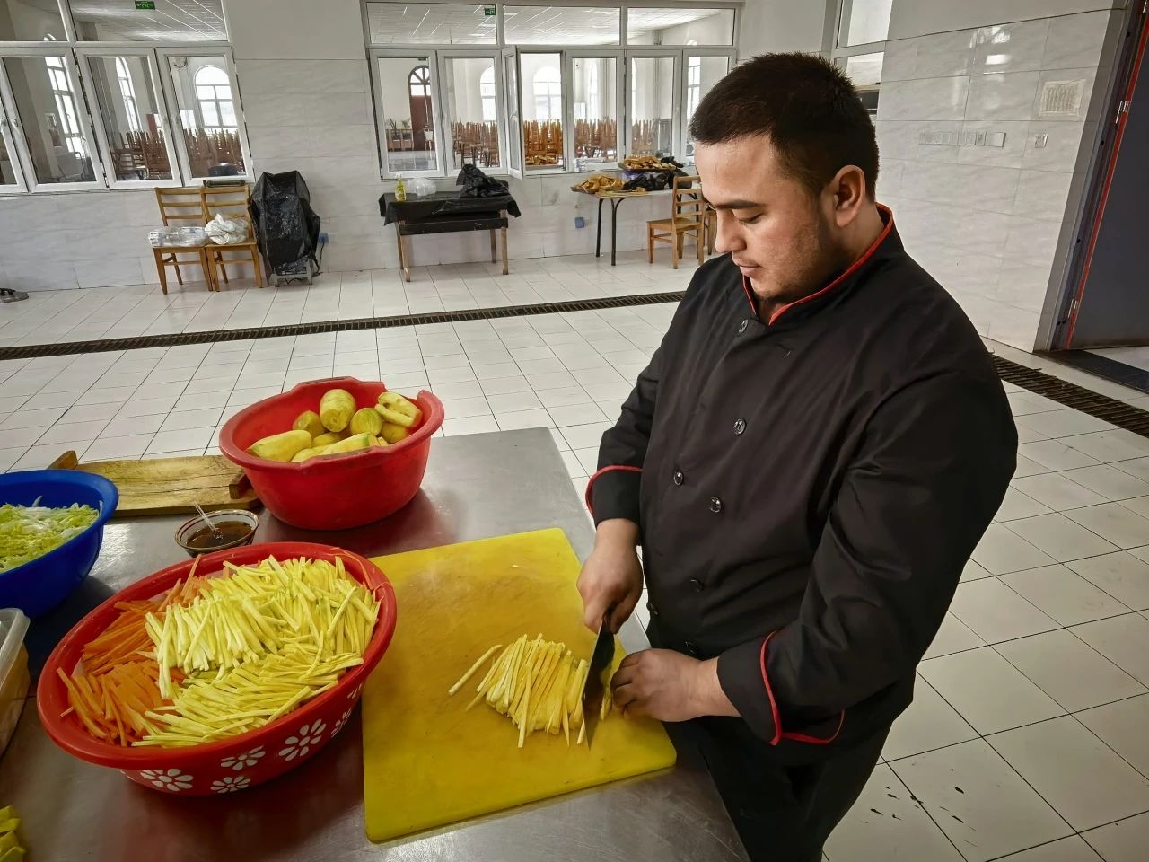 我叫YULDASHBOEV BUNYODBEK(冬唷德別克),是安集延海螺的一名廚師。每天我都和鍋碗瓢盆打交道,酸甜苦辣咸各種滋味都在案板和灶臺(tái)上完成。在做好烏茲傳統(tǒng)菜肴的同時(shí),我還時(shí)常學(xué)習(xí)中國菜肴的制作方法,比如饅頭、餃子和辣椒炒肉,等等。每次看到大家吃的很開心的樣子,我心里就特別的滿足,這也是我工作的重要?jiǎng)恿Α=窈?,我還將持續(xù)努力,為大家?guī)砀嗟拿牢丁?/span>