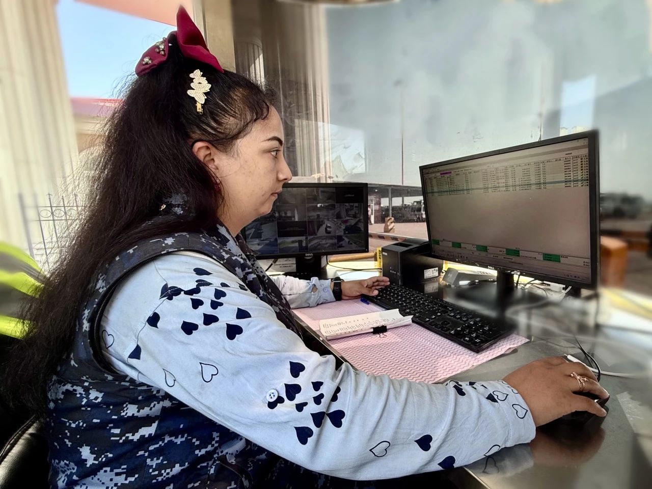 我是卡爾希海螺銷發(fā)系統(tǒng)崗的迪莉婭。我的工作主要是負(fù)責(zé)核對進(jìn)出公司每輛車的信息、異常情況處理和制卡機(jī)維護(hù),有時(shí)還要細(xì)心的同司機(jī)溝通,向司機(jī)講解制卡流程。這個(gè)崗位雖然很平凡,但卻掌握了公司進(jìn)出廠的所有信息,對責(zé)任心的要求很高。對我來說,這個(gè)崗位不僅僅是一份工作,更是公司對我的充分信任。