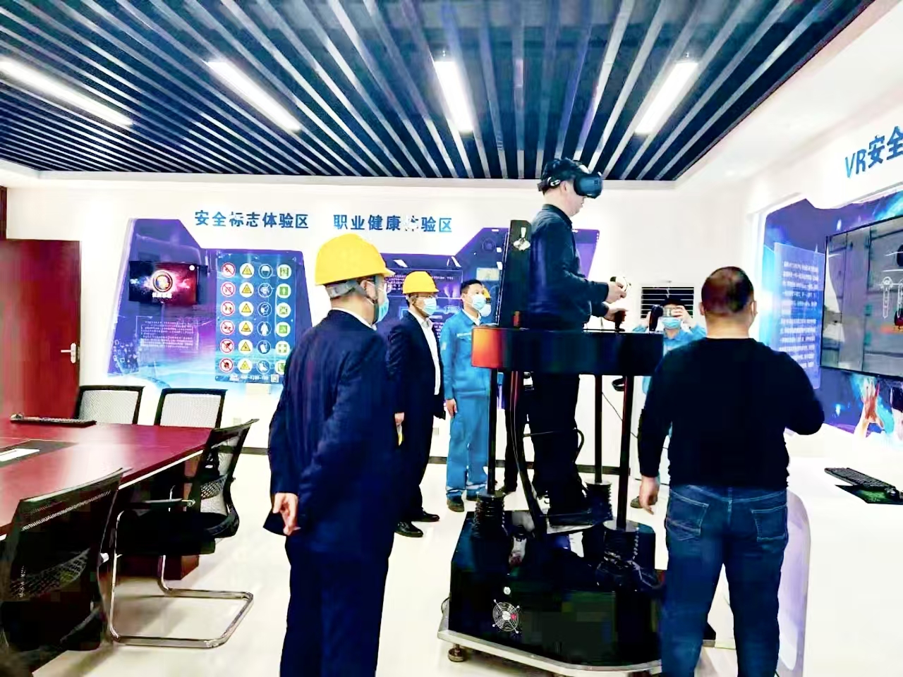 文化長廊隔壁,是充滿科技感的安全警示教育室,VR體驗(yàn)、急救實(shí)操等設(shè)施一應(yīng)俱全。剛?cè)肼毜膯T工小林戴著眼鏡體驗(yàn)粉塵爆炸場景:當(dāng)虛擬空間中粉塵濃度飆升、警示燈爆閃的瞬間,座椅突然劇烈震動,仿佛身臨其境。“太震撼了,比聽十次講座都管用。”摘下眼鏡的他仍心有余悸,“以后每次進(jìn)入粉塵區(qū)域,都會自覺檢查防塵口罩密封度。”新員工需在此完成24小時以上的安全培訓(xùn)方可上崗。